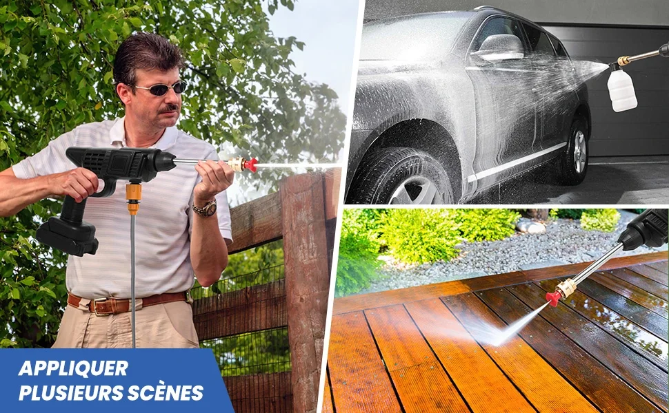 Puissance de nettoyage sans effort : Le pistolet sans fil haute pression élimine sans effort la saleté et les taches tenaces,